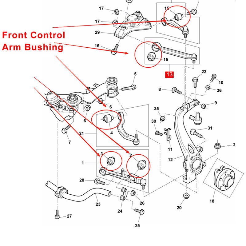 पूरे फ्रंट सस्पेंशन कंट्रोल आर्म बुशिंग सेट को बदलने से सस्पेंशन के डंपिंग प्रदर्शन को बहाल करने में मदद मिलती है,