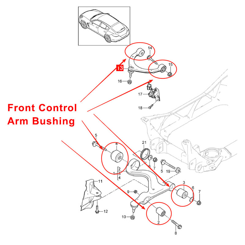 ट्यूनो निर्माता चीन कारखाने की आपूर्ति पोर्श पैनामेरा 2014-2016 फ्रंट अपर और लोअर कंट्रोल आर्म बुशिंग किट, ओई
